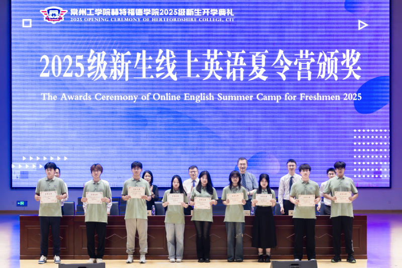 典礼现场暖意融融、氛围热烈。在共同观看2025级新生初入校园后学习生活集锦视频,典礼正式拉开帷幕。仪式上,对2025级新生在线英语夏令营中表现突出的优秀个人、优秀团队与优秀集体,以及荣获赫特福德大学2024-2025学年优秀学生奖学金的学子进行了隆重表彰,以此激励全体新生以榜样为鉴,奋勇争先。