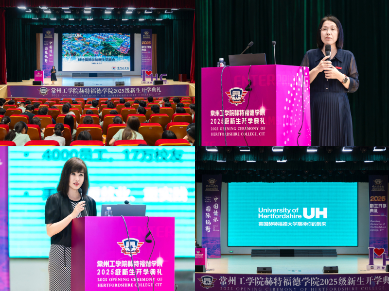 典礼落幕之后,学院院长王文琴与英方教务长Yvonne Yan分别为新生讲授入学教育第一课。王文琴院长围绕中英两校合作历史脉络、学院课程体系特色、课程考核标准、毕业论文(设计)具体要求以及大学学习模式转变等核心内容展开详细解析,帮助新生快速熟悉学业要求;Yvonne Yan教务长则通过生动的图文展示,全面介绍了赫特福德大学的办学成就、完善的校园设施、丰富的教学活动与多彩的学生生活,并分享了2025年我校学生暑期赴赫特福德大学开展研学活动的精彩历程与丰硕成果。