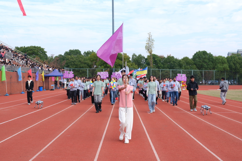 在运动会开幕式上,伴随着《运动员进行曲》,由中外教师及学生代表组成的学院方队昂首挺胸、精神抖擞,迈着自信的步伐,在嘹亮的“青春飞扬,赫特翱翔,运动赛场,铸就辉煌!”的口号中自信走过主席台。
