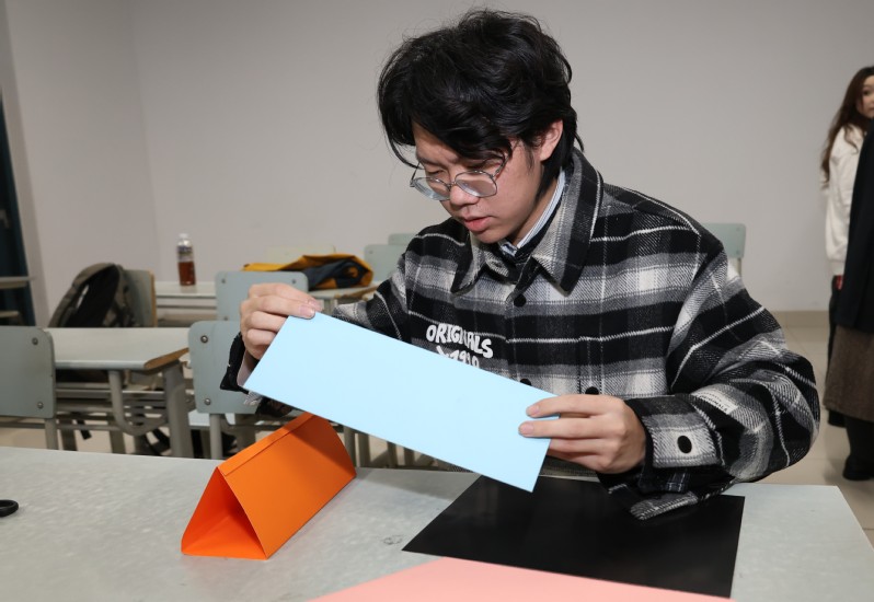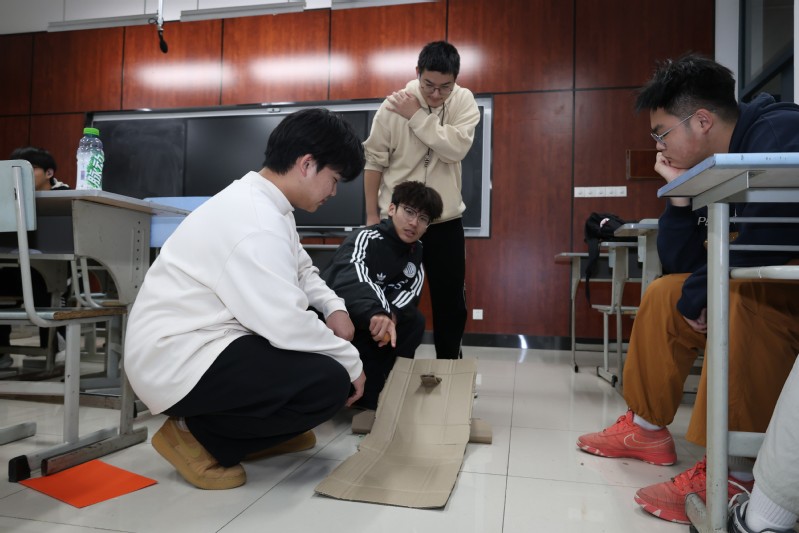 在讨论过程中各组员间难免出现方案分歧,但大家没有拘泥于争执,而是通过沟通协商巧妙化解。每个人都专注其事,或裁剪材料、或调整结构、或模拟测试,紧张而又欢乐的氛围感染着在场每一个人。当各小组展示作品时,成员们眼中满是自豪,对手的创意也赢得阵阵赞叹。