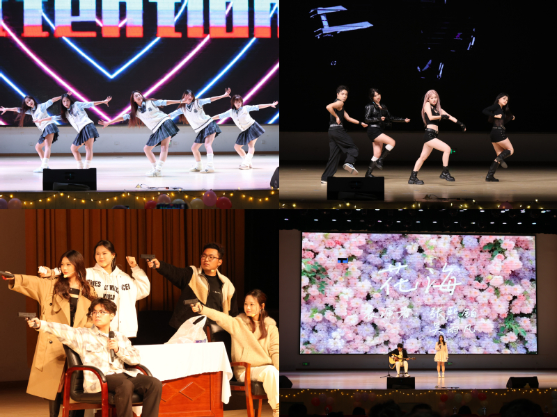 晚会开篇,团舞《Whiplash》凭活力舞姿点燃全场,尽显青年学子蓬勃朝气;吉他弹唱《花海+ThousandCuts》以温柔旋律传递情感,《小酒窝》洋溢欢乐氛围;rap串烧《MYRAP’S COLD》用铿锵节奏引爆现场,为才艺学子搭建了展示自我的舞台。