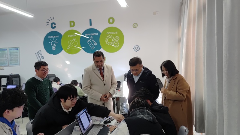 在此次CDIO课程教学期间,校长张兵亲临教学一线观摩指导,并与授课教师及学生深入交流。他对赫特福德学院CDIO课程的教学成效予以高度评价,认为该模式有效促进了学生工程素养的全面提升。张兵校长指出,CDIO理念的深入实施不仅体现在课堂互动与项目成果上,更逐步形成了注重系统思维、团队协作与可持续设计的鲜明育人特色,在校内起到了良好的示范作用。他表示,未来赫院应进一步深化与英方的合作,在课程衔接、评价体系与师资共建等方面加强融合,同时推动CDIO理念向校内其他学院辐射延伸,促进该教学模式在更广范围、更深层次落地见效,共同培养具备全球视野与卓越创新能力的新一代工程技术人才。