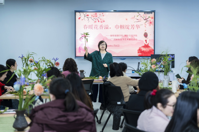 为庆祝“三八”国际劳动妇女节,丰富学院女性教师和学生的精神文化生活,营造温馨和谐、温情雅致的节日氛围,赫特福德学院/国际交流学院分工会精心策划并开展了创意插花活动,邀请学院中外女性师生代表共同参与,携手共赴春日之约,同享花艺之美。